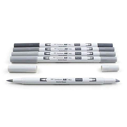 Tombow ABT-N15-6P Fibre Tip Pen Dual Brush Pen with Two Nibs - Black