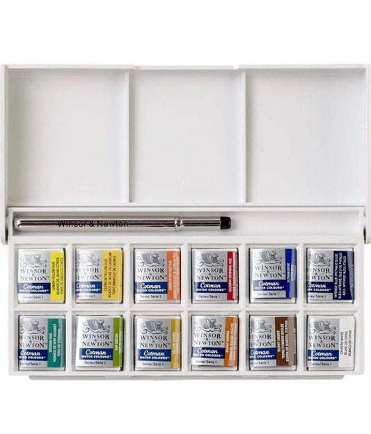Winsor & Newton Cotman Water Colours Pocket Plus - Set of 12 Half Pans