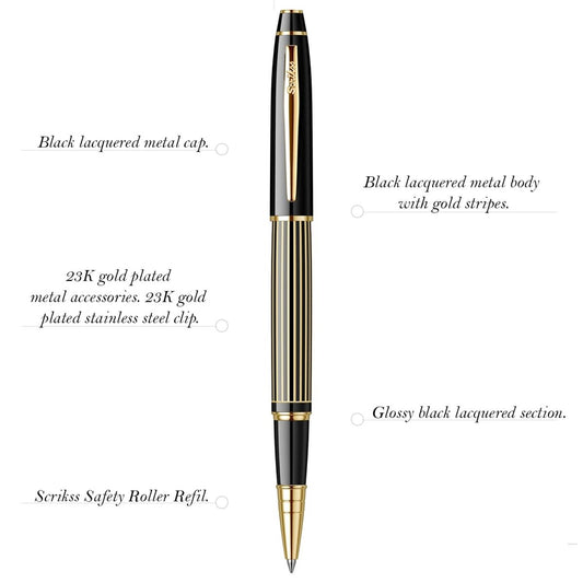 Scrikss Noble 35 Roller Ball Matt Black Gold Pen