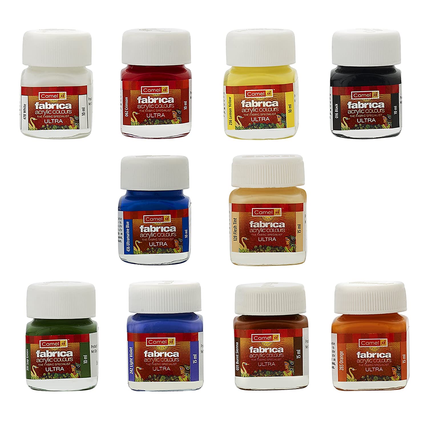 - Camel fabric acrylic colours are permanent on absorbent surfaces.