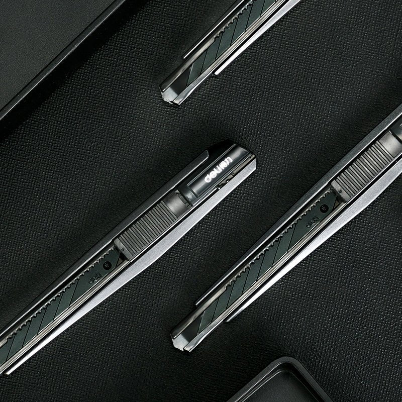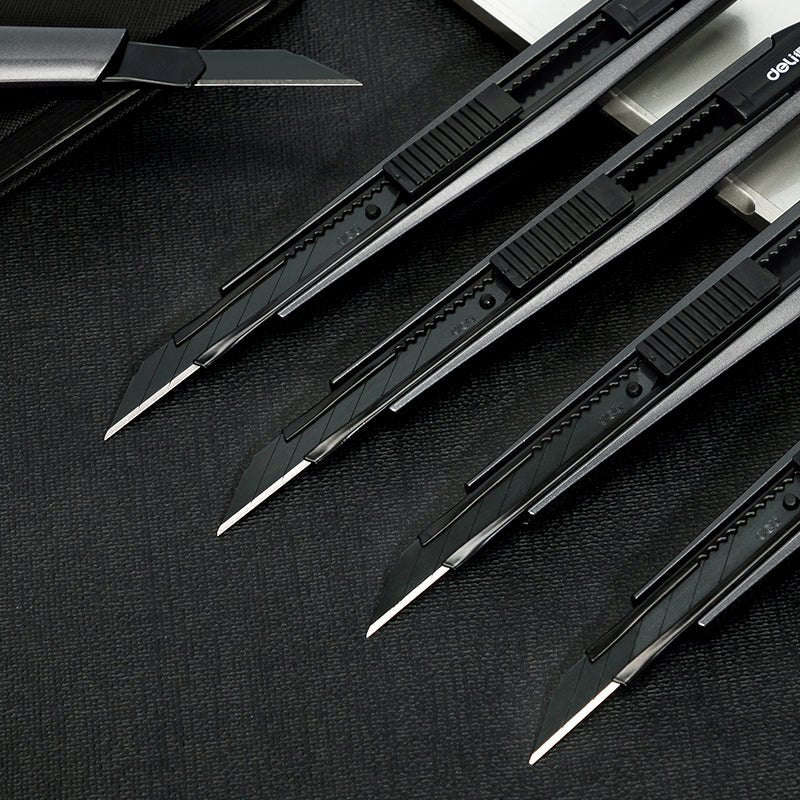 - Deli Key Product Features:Hard SK5 steel blacken blade for easy cutting Color Family: Black Size & Spec.: 30° Black Blade 9mm Material: