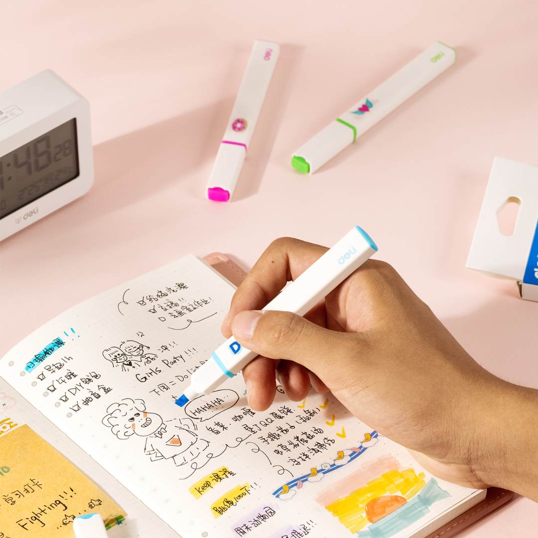 - Deli Little Singer Highlighter resistant to fading, non Toxic Ink, dry fast, low odor