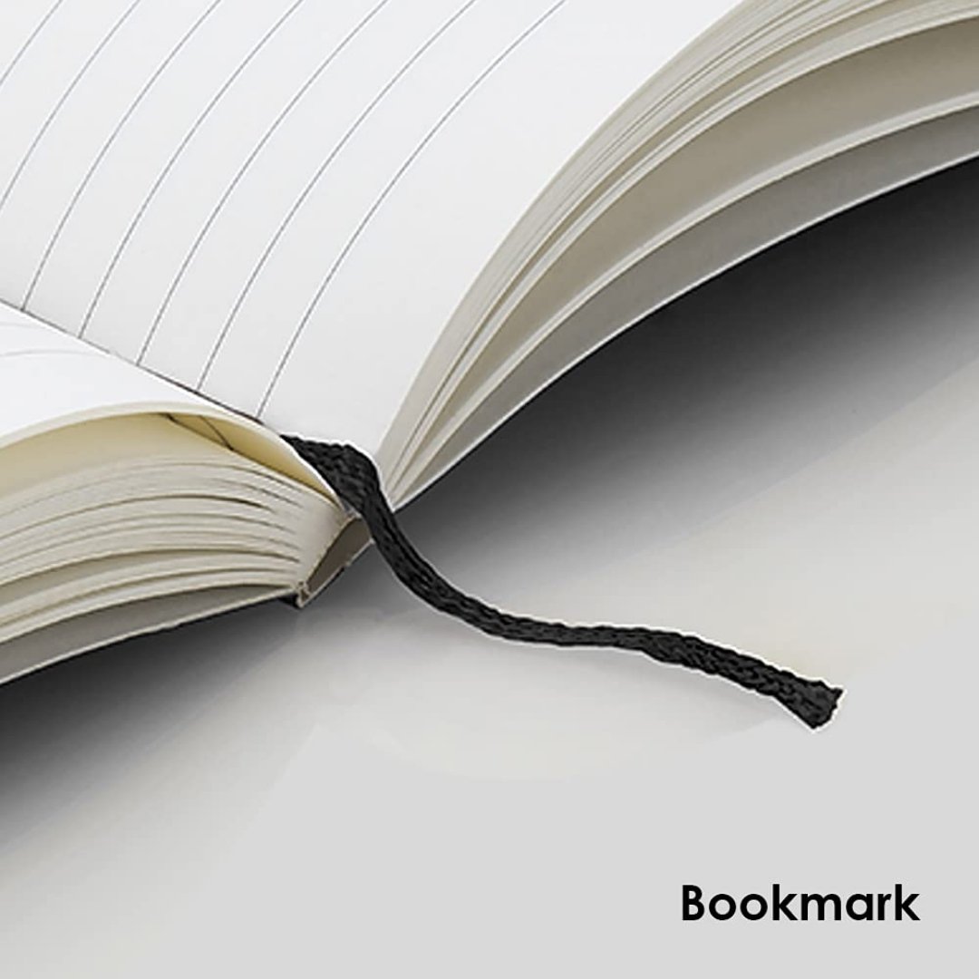 - The book is section thread bound and has paper cover with rounded corners, a bookmark and an elastic closure.
