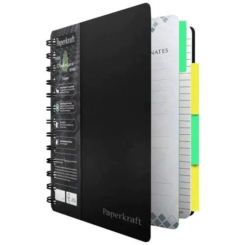 - Paper Kraft Green impression 5 Subject WIRO binding Notebook made from perma white ultra-premium quality papers for neat and clear writings.