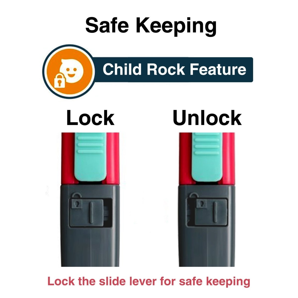 - Resists rust and stains, Auto Lock Slide Lever, Child Lock, Resists adhesion of tape and glue