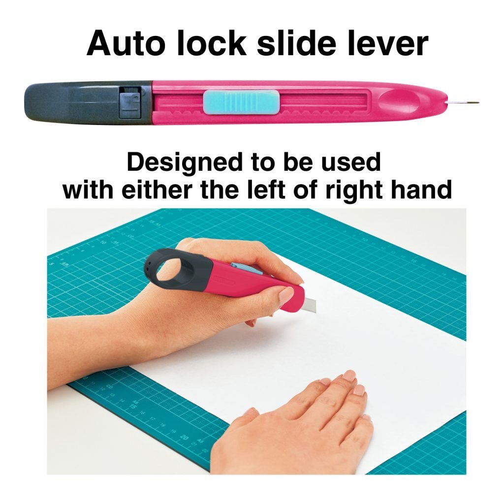 - The cutter is compact and lightweight with a comfortable grip and wide retractable blade