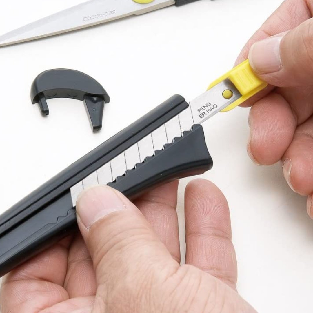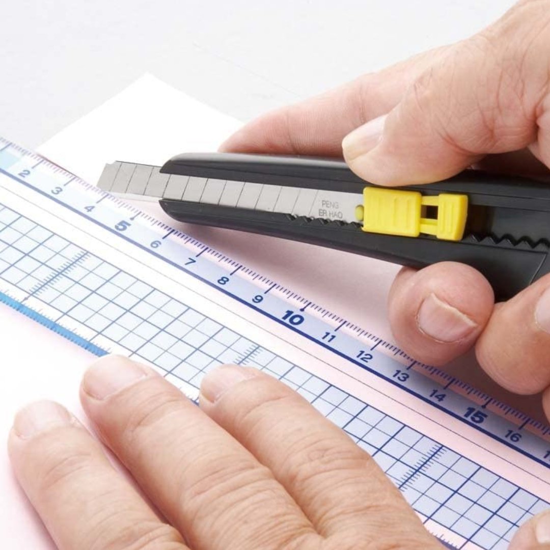 - A convenient tool with the safety cap of the scissors is a cutter.