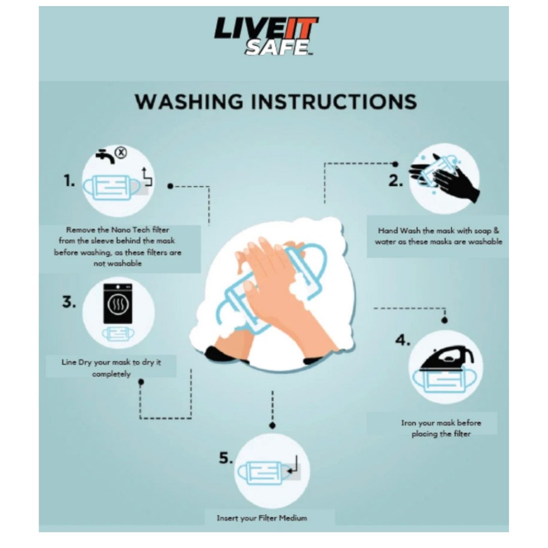 3. Wash your mask frequently. Please take out the filter and then wash the mask and replace the filter medium back.